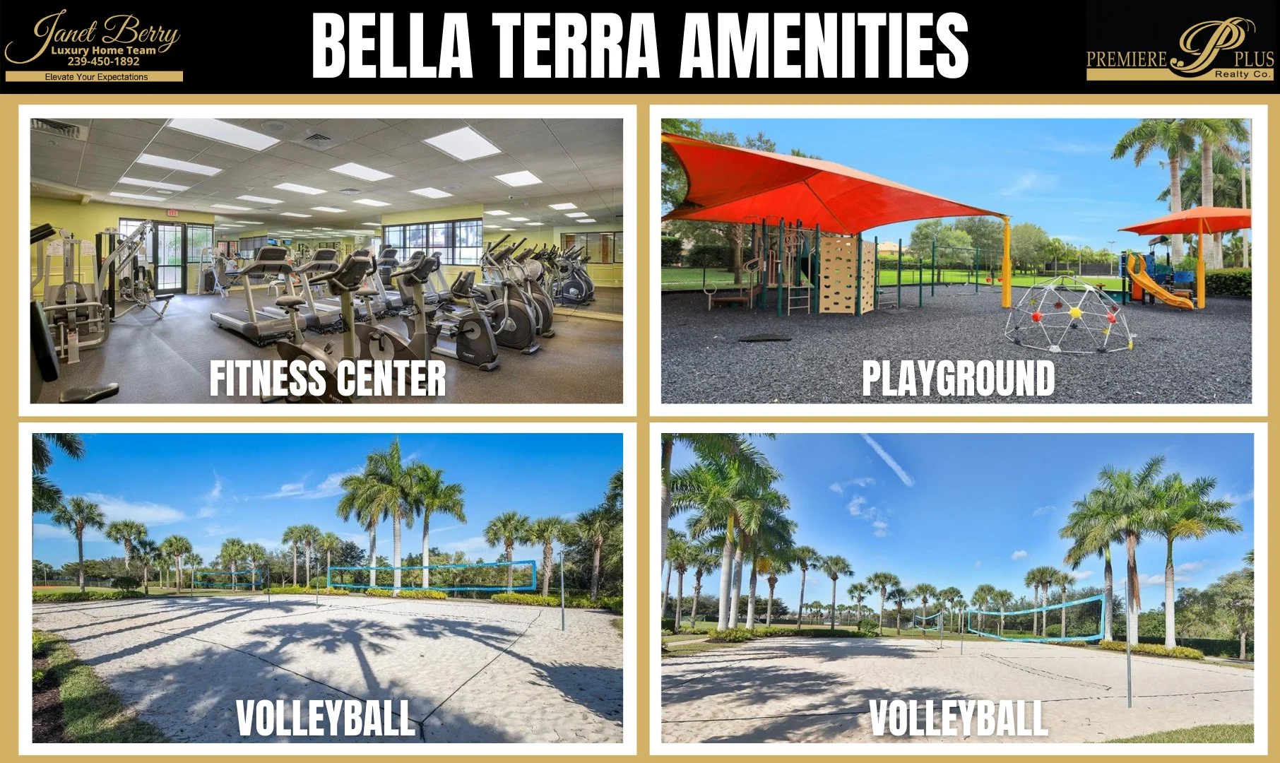 Bella Terra in Estero Florida has incredible amenities including a state of the art fitness room, amazing pool and spa, children’s playground, tennis courts, pickleball courts, bocce ball, basketball courts, volleyball courts, street hockey, a soccer field, and a baseball diamond.