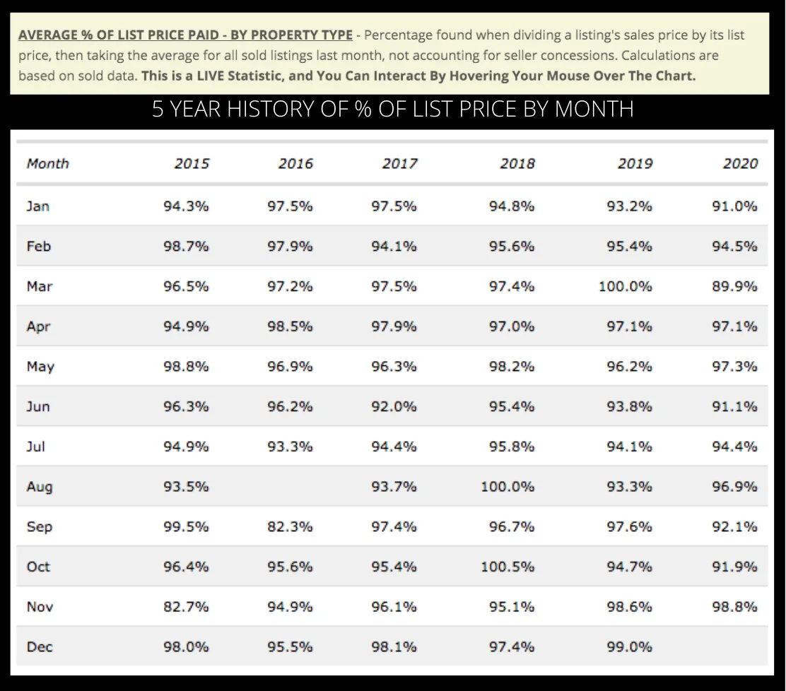 This statistic is pretty out of whack this month since only 2 homes sold, one of which was only on the market for 1 day. Statistically, the average days on market in November was 13, which is an 88% decrease compared to last month, and a 95% decrease compared to last year.  That number can move around quite a bit if there are more sales next month which I completely expect.